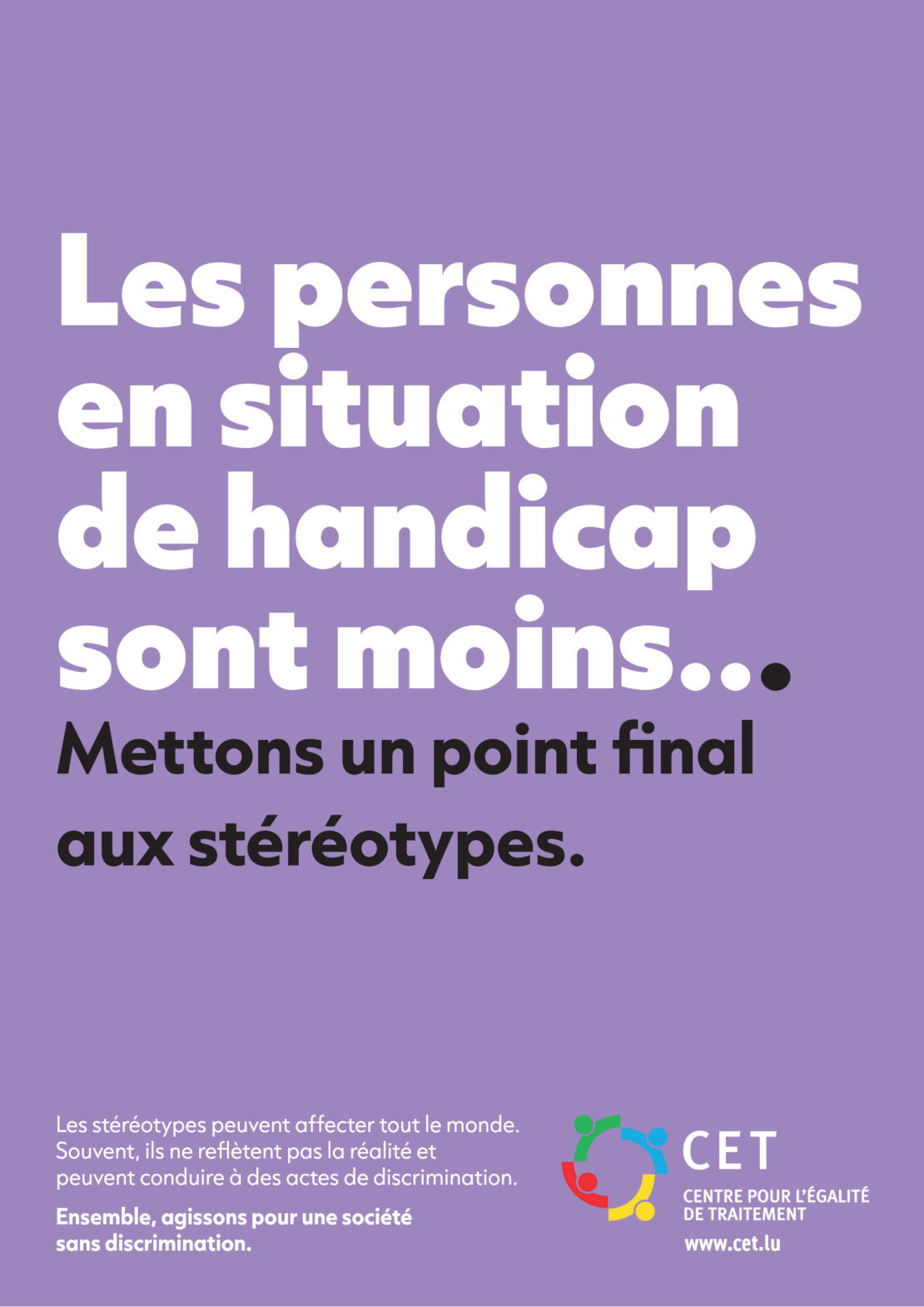 Si toutefois vous vous sentez visé·e par certains termes, ou si la campagne vous met mal à l’aise ou vous blesse, n’hésitez pas à nous en faire part. Vous pouvez nous contacter à : info@cet.lu.
