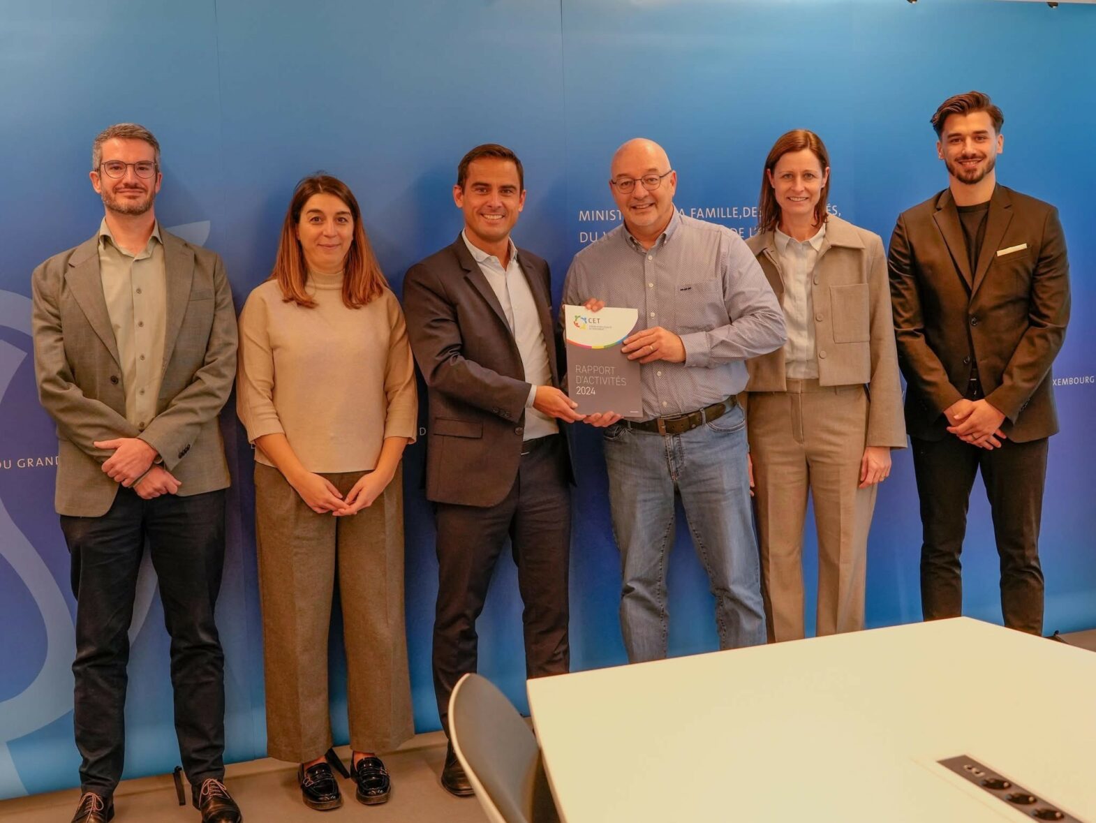 (de g. à dr.) Gilles BOULTGEN, Coordinateur exécutif du CET ; Catia Fernandes, membre du CET ; Andy SCHAMMO, membre du CET ; Claude WISELER, Président de la Chambre des Député·es ; Jean-Marc Scheer, membre du CET ; Sylvie Kerger, membre du CET ; Benoît Reiter, Secrétaire général adjoint de la Chambre des Député·es (copyright photo: Chambre des Député·es)(de g. à dr.) Gilles BOULTGEN, Coordinateur exécutif du CET ; Catia FERNANDES, membre du CET ; Max HAHN, Ministre de la Famille, des Solidarités, du Vivre ensemble et de l’Accueil ; Jean-Marc SCHEER, membre du CET ; Sylvie KERGER, membre du CET ; Catia FERNANDES, membre du CET ; Andy SCHAMMO, membre du CET (copyright photo: Ministère Ministère de la Famille, des Solidarités, du Vivre ensemble et de l’Accueil)